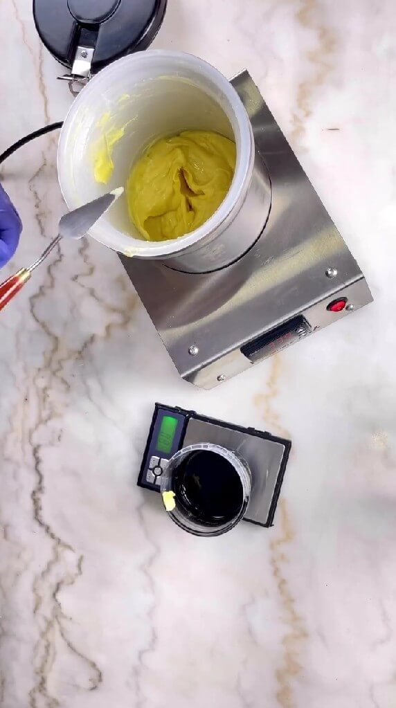 The perfect consistency of cocoa butter silk should be the same as regular mayonnaise.