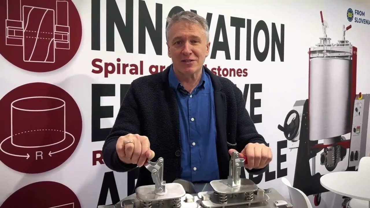 The melanger features high-quality granite stones with a patented spiral grooving design, making it stand out in the world of chocolate and nut processing.